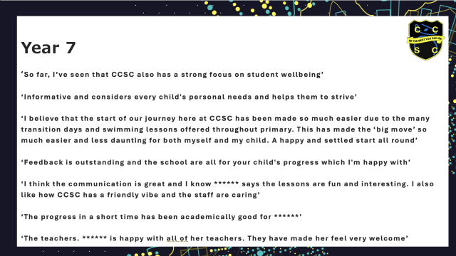 From the smooth transition into Year 7 to the academic growth seen in Year 10, families spoke highly of the dedication of our staff, the supportive atmosphere, and the positive impact on their children’s confidence and progress.